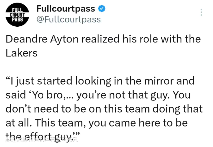 2026-03-18 22:00北京时间3月18日,据湖人队记Dan Woike报道,艾顿认清了自己在湖人的角色定位。