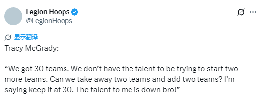 麦迪谈NBA扩军:裁掉两队再新增两队得了 联盟天赋水平根本撑不起32队