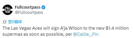 实至名归!阿贾-威尔逊即将与王牌续约 签下超级顶薪140万美元合同