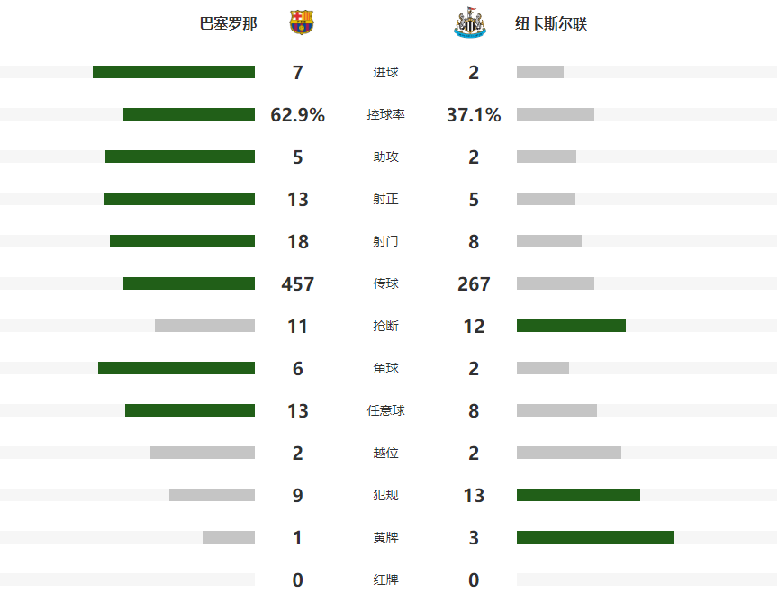 欧冠:巴萨7-2大胜纽卡总分8-3晋级 拉菲尼亚2射2传莱万两球