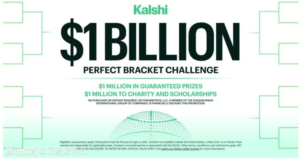 本次挑战规则极具诱惑力:参与者只需精准预测NCAA疯狂三月全部赛事赛果,即可独享10亿美元巨额奖金;如果无人实现完美预测,赛事预测正确率最高的参与者,将斩获100万美元安慰大奖。更值得关注的是,Kalshi明确表示,本次活动全程零参与费用,无需任何门槛即可入局角逐天价奖金,大幅降低了大众参与难度。