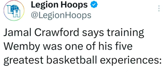生涯前五时刻!克劳福德盛赞文班:训练不是我教他 几乎反而是他在教我