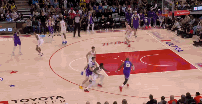 上半场比赛,詹姆斯投篮8中8,三分球2中2,拿到18分,并且贡献了4个暴扣。而上半场比赛他进账1个抢断,也让自己的生涯总抢断数来到了2400个,暂居历史第六位,排在第五位的是老佩顿(2445个)。