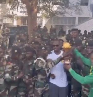 在众多军人的簇拥下,塞内加尔主帅蒂奥手捧非洲杯冠军奖杯。《奥莱报》指出,塞内加尔将非洲杯带到军事基地,这是保护奖杯,拒绝非洲足联将奖杯带走。