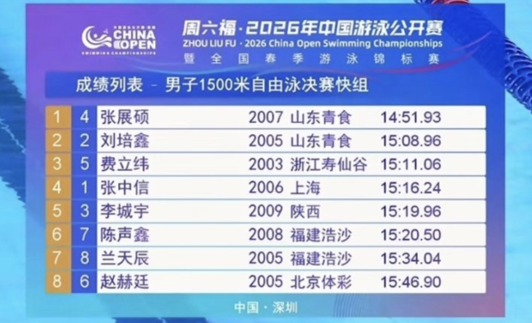 从200米到1500米,从短距离速度到长距离耐力,张展硕正以全能型中长距离自由泳选手的姿态,成为后潘展乐时代中国男子泳坛的又一领军人物。