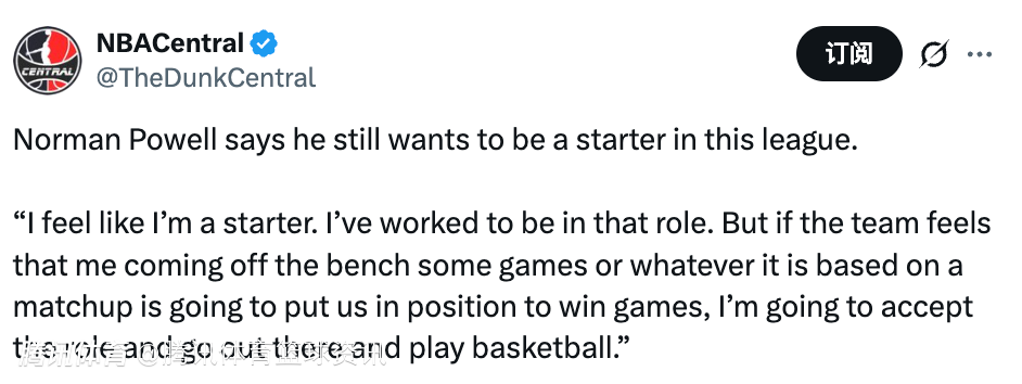 2026-03-21 01:30北京时间3月21日,近期,诺曼-鲍威尔接受了媒体的采访,他表示,自己依然希望在联盟中担任首发球员。