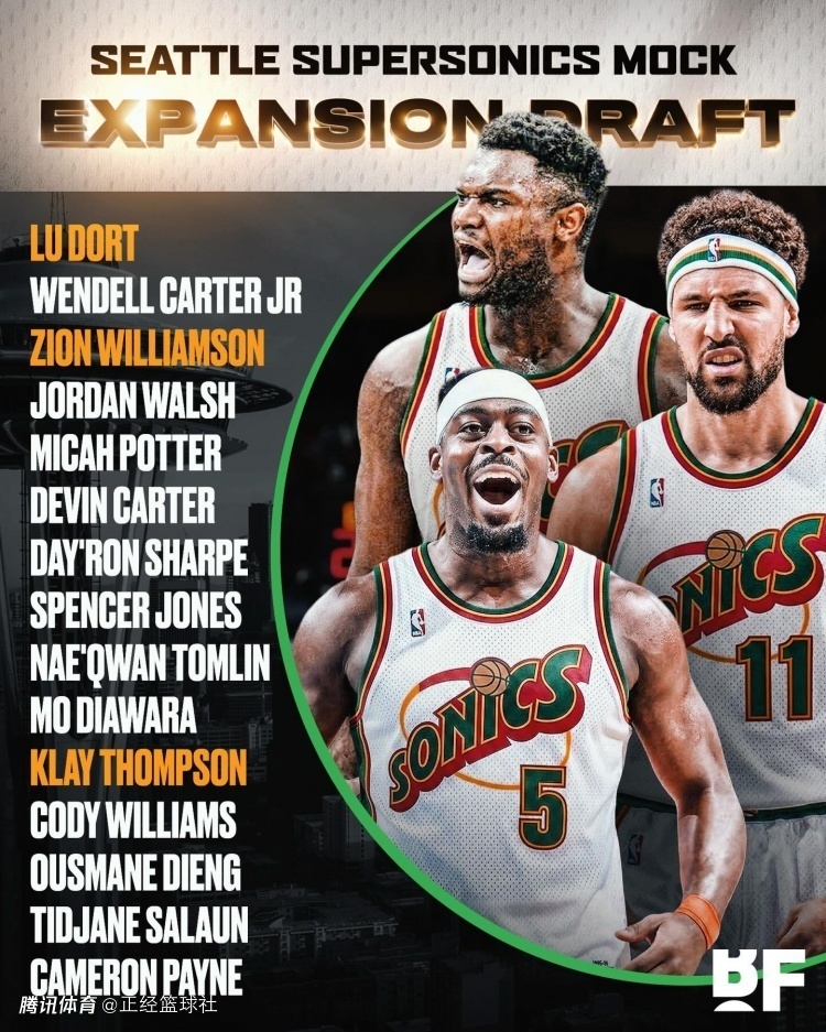 美媒模拟西雅图新军15人新阵:锡安克莱领衔 多尔特夏普等名将在列