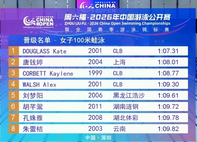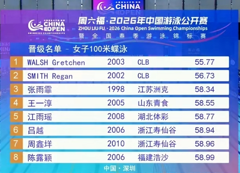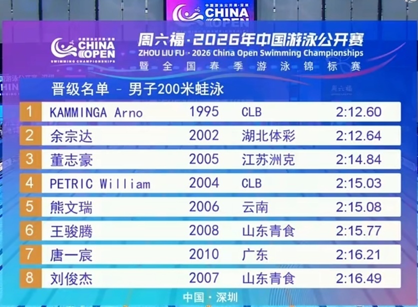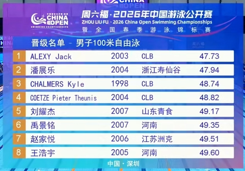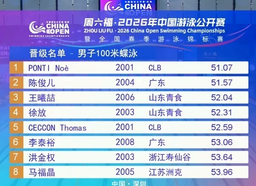 2026-03-21 13:30在刚刚结束的中国游泳公开赛第三比赛日上午场预赛里,外协选手们继续发挥出色,拿到了6项第一: