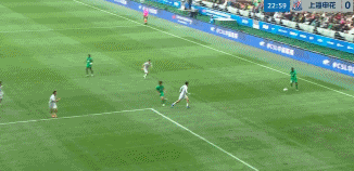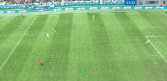 第42分钟,申花防线险些超巨失误,张玉宁抢断后趟球过大错失良机。