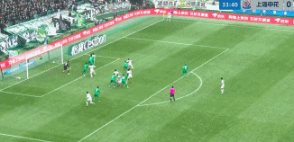 第34分钟,高天意右侧角球送到门前,朱辰杰头球攻门顶偏队友包抄差半步。