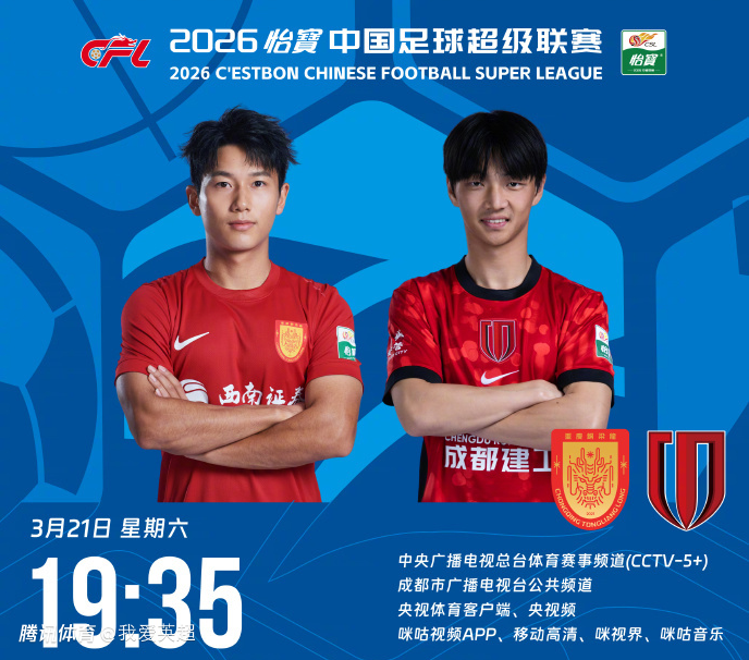 2026-03-21 18:30北京时间3月21日19点35分,新赛季中超第3轮备受关注的“成渝”德比打响,升班马重庆铜梁龙坐镇主场重庆龙兴足球场,迎战成都蓉城。而本场比赛,双方的首发阵容也已经出炉。