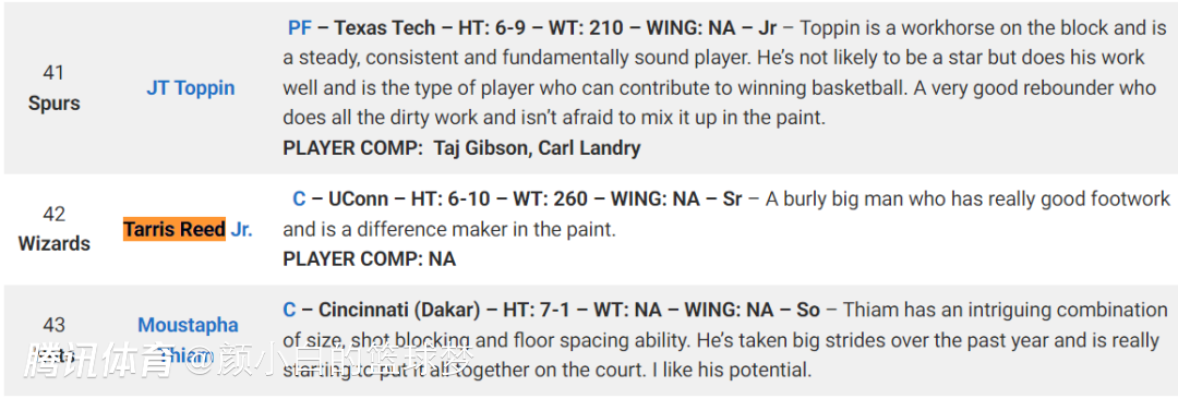 值得一提的是里德在2026届选秀排名只仅仅排在第42位,也就是次轮12位,休斯顿火箭队手握公牛26年次轮,火箭队可以培养一个能接替卡佩拉的第三中锋,等亚当斯老去后成为球队第二中锋。