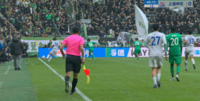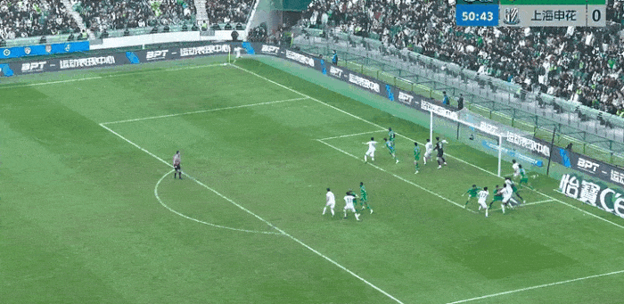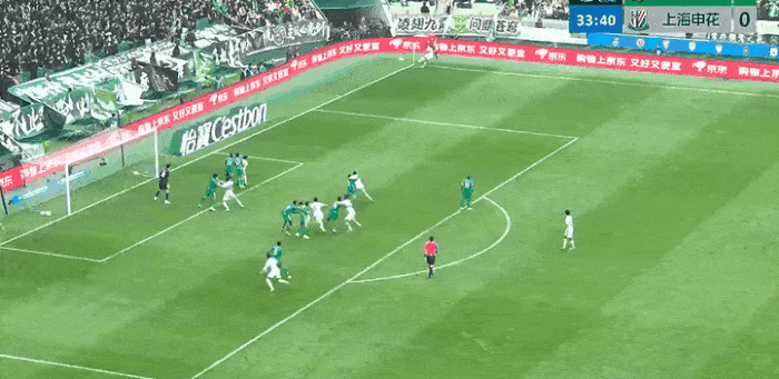 第34分钟,申花右侧角球到小禁区,朱辰杰无人防守的情况下头球顶疵,后点的拉唐也没能形成打门。