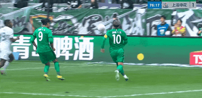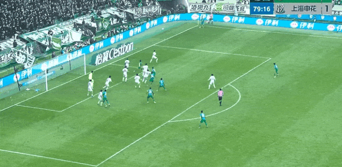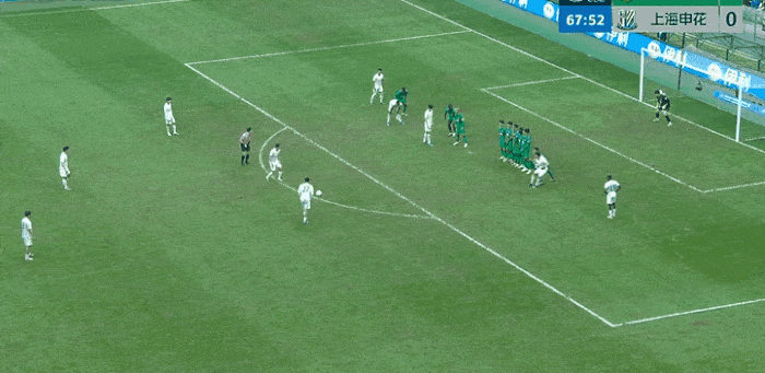 世界波!第68分钟,阿卜杜海米提大禁区弧里放倒米内罗染黄,陈晋一主罚任意球直接轰球门左侧死角得手,申花1-1扳平比分。
