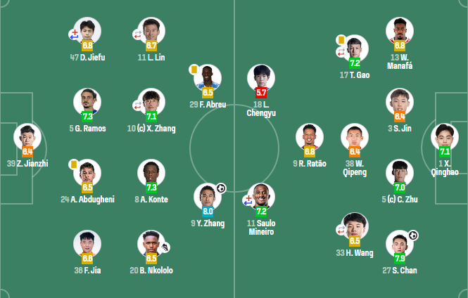 未出场替补:24-马镇、40-王杰、2-王世龙、25-朱越、26-杨帅、36-黄铭、8-李可、10-特谢拉、45-韩嘉文