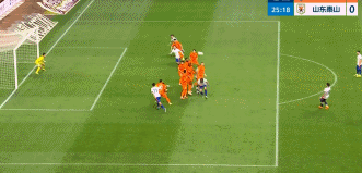 第23分钟,克雷桑主罚禁区前沿任意球,鲍亚雄无反应,皮球击中横梁弹出。