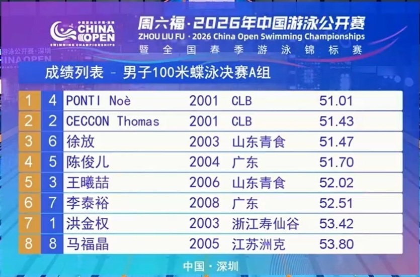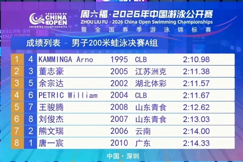 2026-03-21 21:50在刚刚结束的中国游泳公开赛第三比赛日晚场决赛里,外协选手们继续发挥出色,拿到了5枚金牌:男100自/阿莱克西&查尔莫斯(并列)、男200蛙/卡明加、男100蝶/庞蒂、女100蝶/沃尔什。