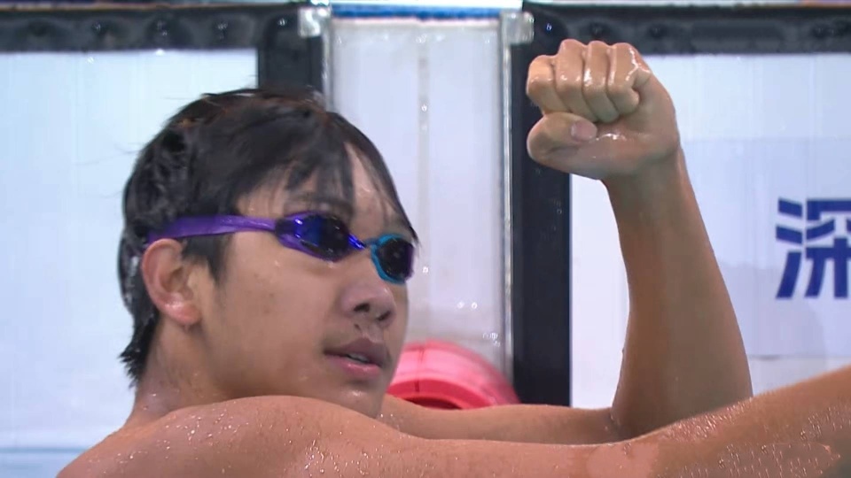 决赛潜泳出水后大家差不多,前50余宗达第一,董志豪落后0.29秒;