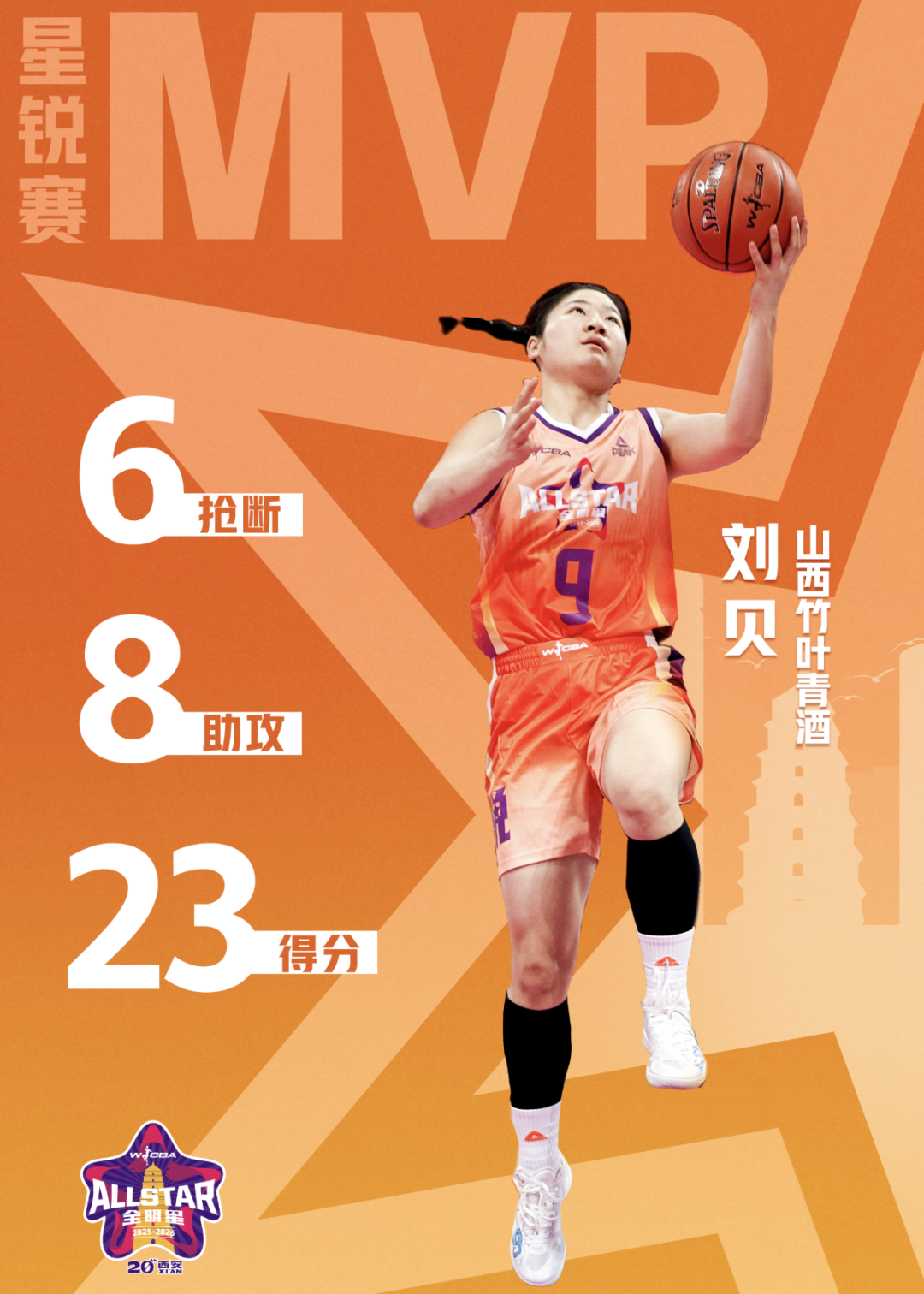 WCBA全明星星锐赛:刘贝23+6+8+6断荣膺MVP 张子宇20+8北区29分大胜南区