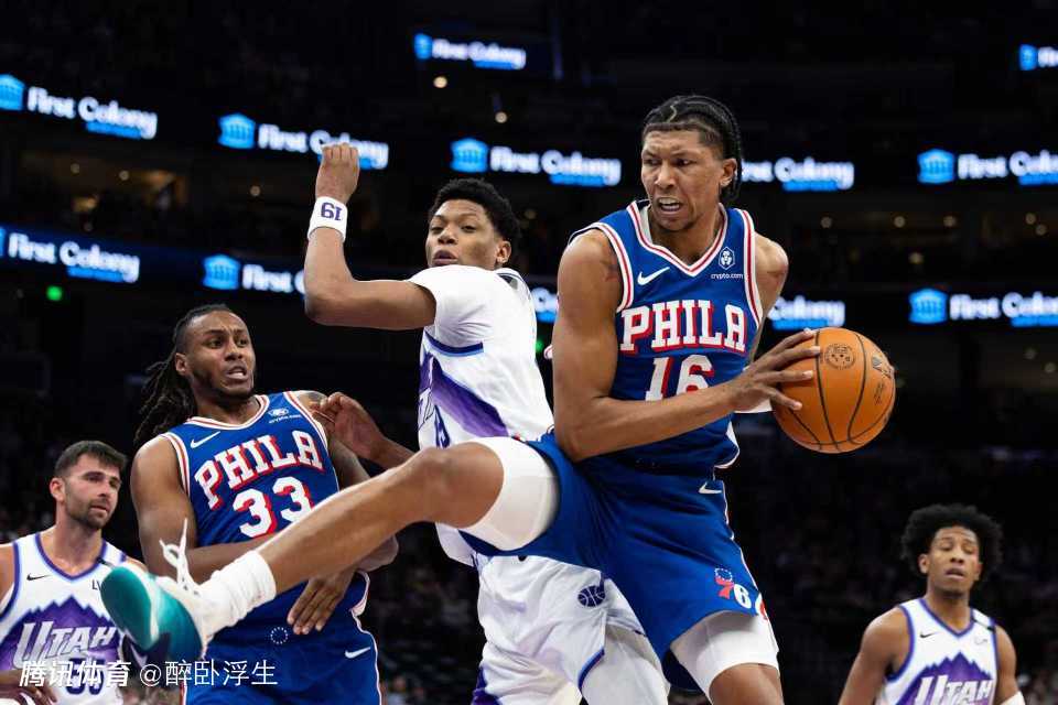 埃奇库姆受伤后又回归22+13!76人连续两季横扫爵士 贝利25分