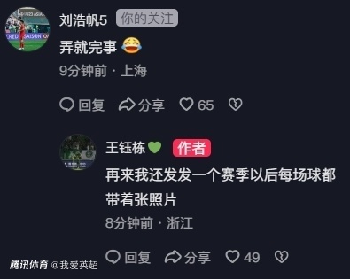 而U23国足的队友刘浩帆也在评论区力挺王钰栋:“弄就完事!”王钰栋则回复道:“再来(举报的话)我还发,发一个赛季,每场球都带着这张照片!”