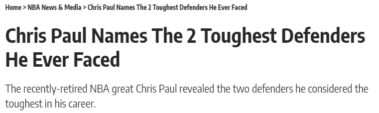 保罗点名生涯两大噩梦防守者:托尼-阿伦太难缠 科比生气时也一样