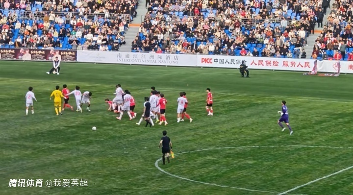 多位情绪激动的海港队球员上前一把推倒南通队球员,随后两队多人加入冲突,甚至连双方的守门员都奔袭大半场加入战局。