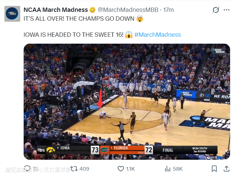 赛后爱荷华大学有多位球员都痛哭流涕,创造奇迹的夜晚让太多爱荷华大学的球迷感到动容。当然佛罗里达大学的球迷们就会非常痛楚了,卫冕冠军+一号种子被准绝杀太惨了。