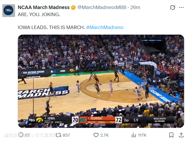 2026-03-23 10:30北京时间3月23日,NCAA疯狂三月锦标赛32进16,卫冕冠军佛罗里达大学72-73惜败赛区九号种子爱荷华大学止步32强。佛罗里达大学也是赛区一号种子,NCAA再度出现了奇迹一战,正如迪班萨、彼得森被名不见经传的大学淘汰一样。