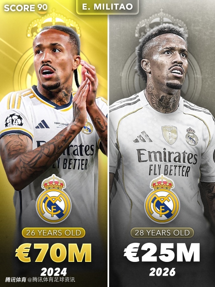 后防线上,埃德尔·米利唐的市场价值也出现明显回落,由7000万欧元下降至2500万欧元,跌幅接近三分之二。