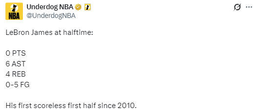 生涯第三次!詹姆斯上半场得分为0 上次出现这种情况还是2010年