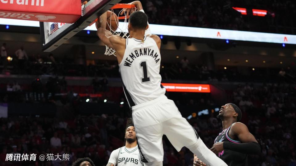 马刺136-111大胜热火,文班亚马出战26分钟,22投11中,得到26分15篮板4助攻5封盖,他的生涯总得分突破4000大关,文班成为历史第三位在26分钟以内拿到25+15+5盖帽的人,前两位是1978年的比尔-沃顿和2021年的怀特塞德。