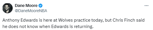 受右膝炎症困扰!森林狼主帅:爱德华兹已参与球队训练 何时复出仍不确定