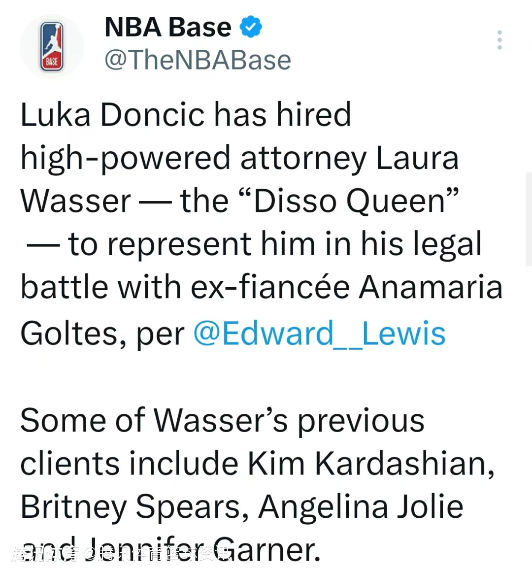 东契奇聘请顶级离婚律师处理与前未婚妻法律纠纷 曾代理卡戴珊等巨星离婚案