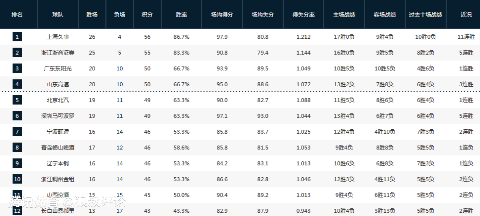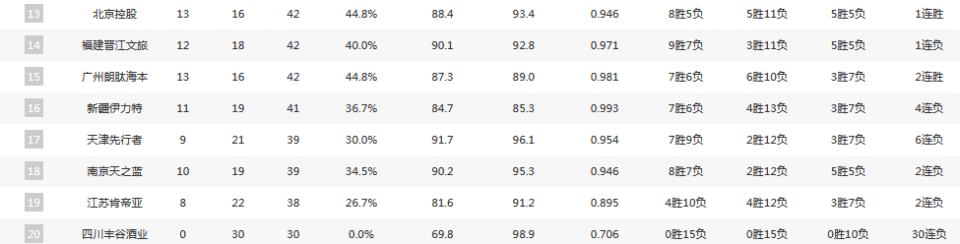CBA排名:上海11连胜初露冠军相 北京拒绝逆转 四川创历史最长连败