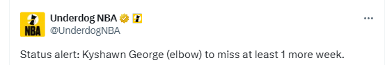 2026-03-26 06:20北京时间3月26日,据奇才官方透露,凯肖恩-乔治(肘部伤势)将在一周后接受复查,届时会公布他本赛季剩余赛程的出战状态更新。