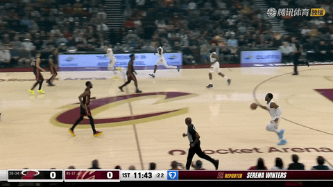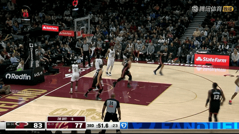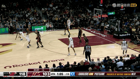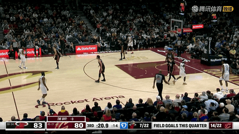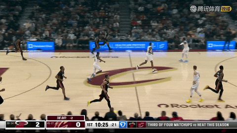 首节还剩10分15秒时,鲍威尔接阿德巴约助攻命中三分,紧接着还剩8分55秒时维金斯再中三分,热火打出8-0攻势,迫使骑士进攻长时间哑火,直到还剩8分38秒时米切尔撤步跳投命中才为骑士得分。
