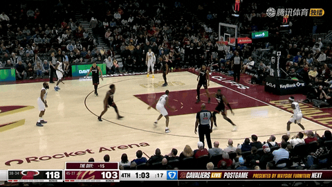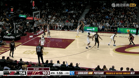 比赛开始还剩11分34秒时,D-米切尔上篮命中,为热火先得分并打破僵局。