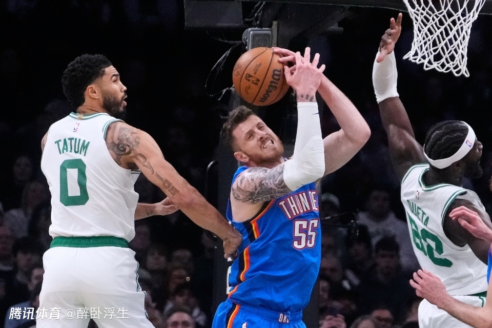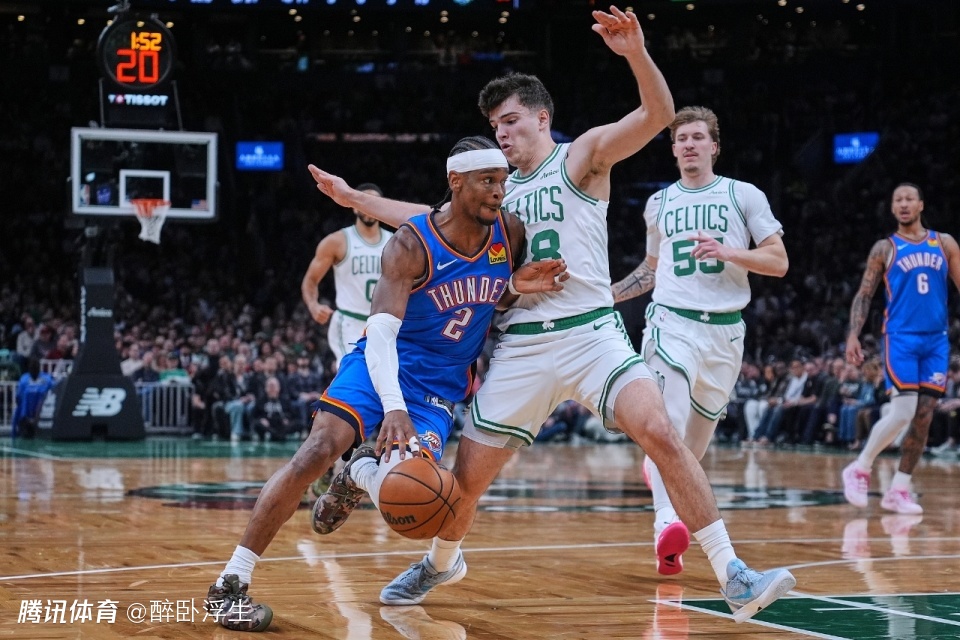 进入第四节比赛,凯尔特人连续两节得分30+,且雷霆本场第二次单节得分不足30分。凯尔特人率先攻防压制逐步扩大14分领先优势,卡鲁索引领雷霆略有反扑追分,但凯尔特人继续保持两位数领先优势,最终雷霆被凯尔特人逆转结束12连胜。