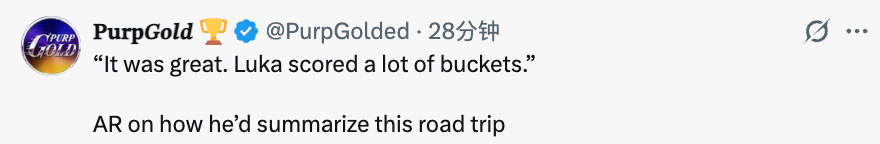 谈及这波客场之旅,里夫斯表示:“这次旅程太棒了,卢卡投进了超多球。”另外里夫斯也透露:“我在高尔夫场上故意让东契奇赢了我,这关乎信心培养,晚上7点的比赛,我们需要他保持最佳状态,总得让朋友们开心嘛。”