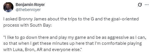 在谈到征战G联赛给自己带来的帮助时,布朗尼表示:“我很愿意去G联赛打比赛,打出自己的风格,尽可能打得更具侵略性。这样等我在NBA获得上场时间时,就能从容地和我爸爸、东契奇、里夫斯以及其他队友们并肩作战。”