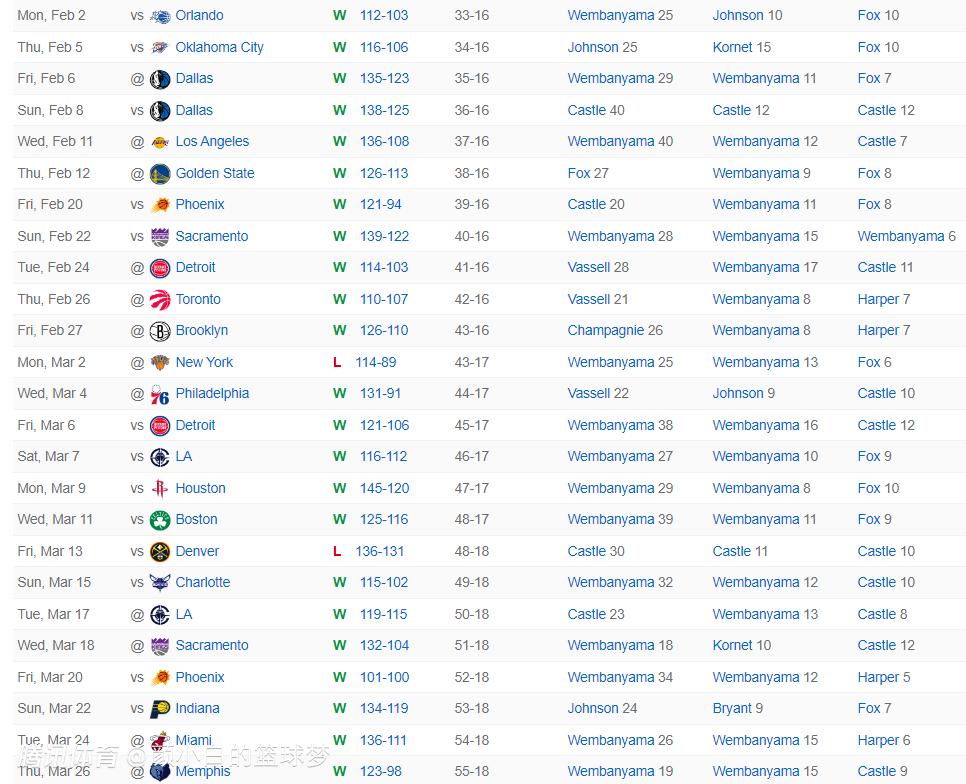 马刺25战23胜冲击雷霆!文班亚马MVP讨论愈演愈烈 美媒预测不看好