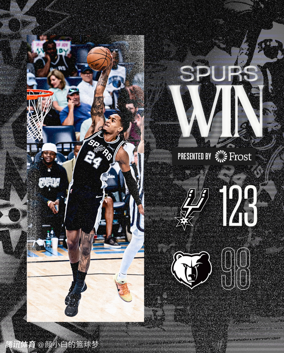 2026-03-26 12:00北京时间3月26日,马刺123-98大胜灰熊拿到7连胜,随着雷霆被绿凯击败结束12连胜,马刺距离雷霆只剩下2个胜场。这场比赛文班亚马三节打卡下班拿到19分15篮板3助攻3抢断7盖帽的炸裂数据。马刺过去的25场比赛赢下其中的23场。