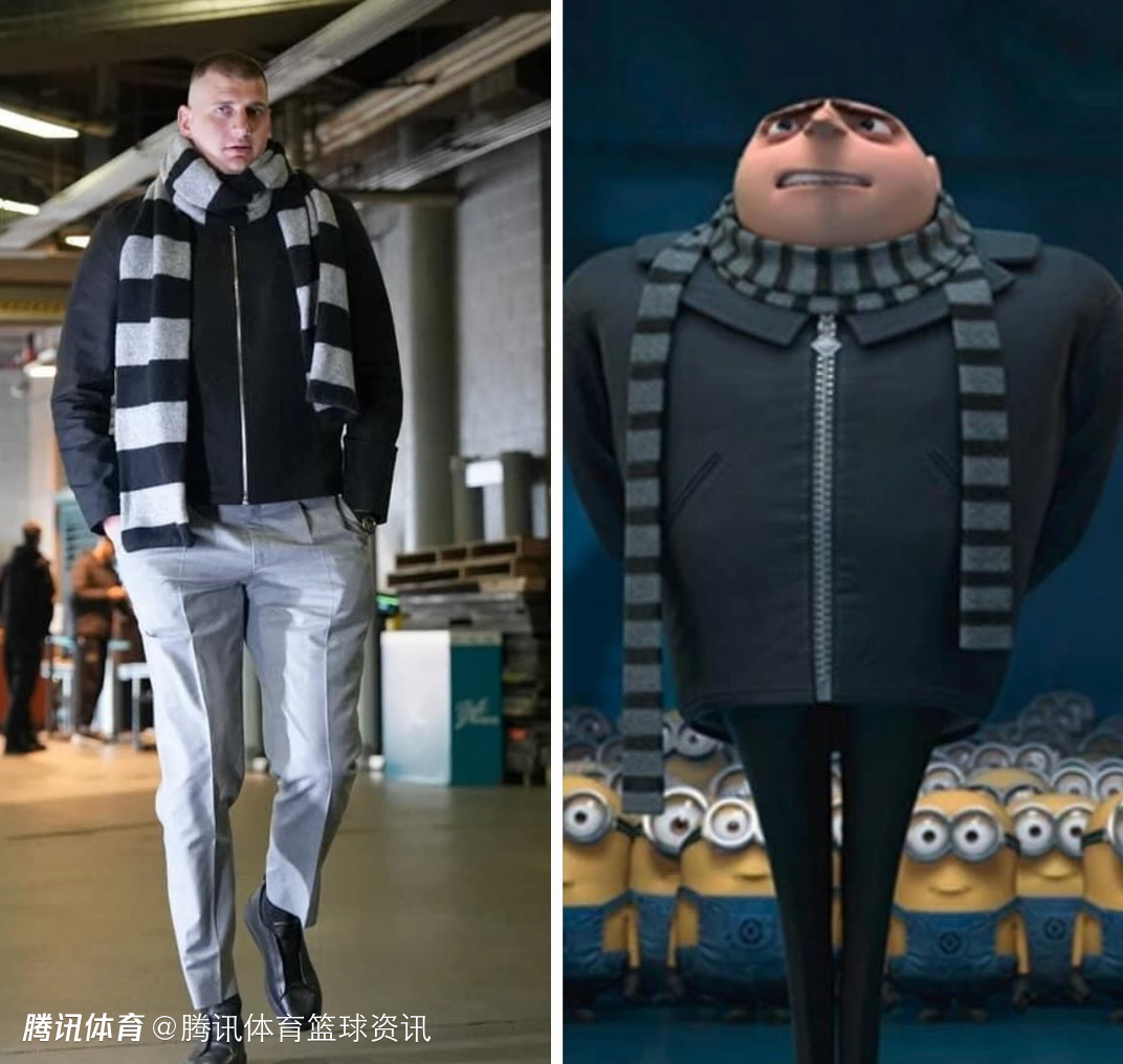 值得一提的是,约基奇此前入场穿搭曾COS《神偷奶爸》中的格鲁一角,而这部电影正是关于小黄人的。早在2024年4月份的季后赛赛前,当时约基奇入场穿搭COS格鲁,就引起了球迷的热议。