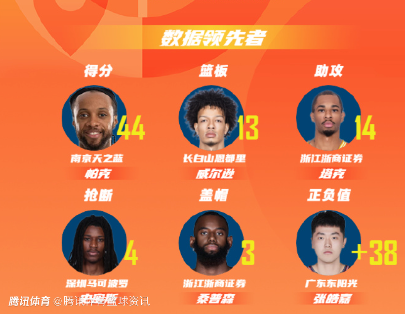 南京天之蓝球员帕克以单场44分的数据领衔得分榜;