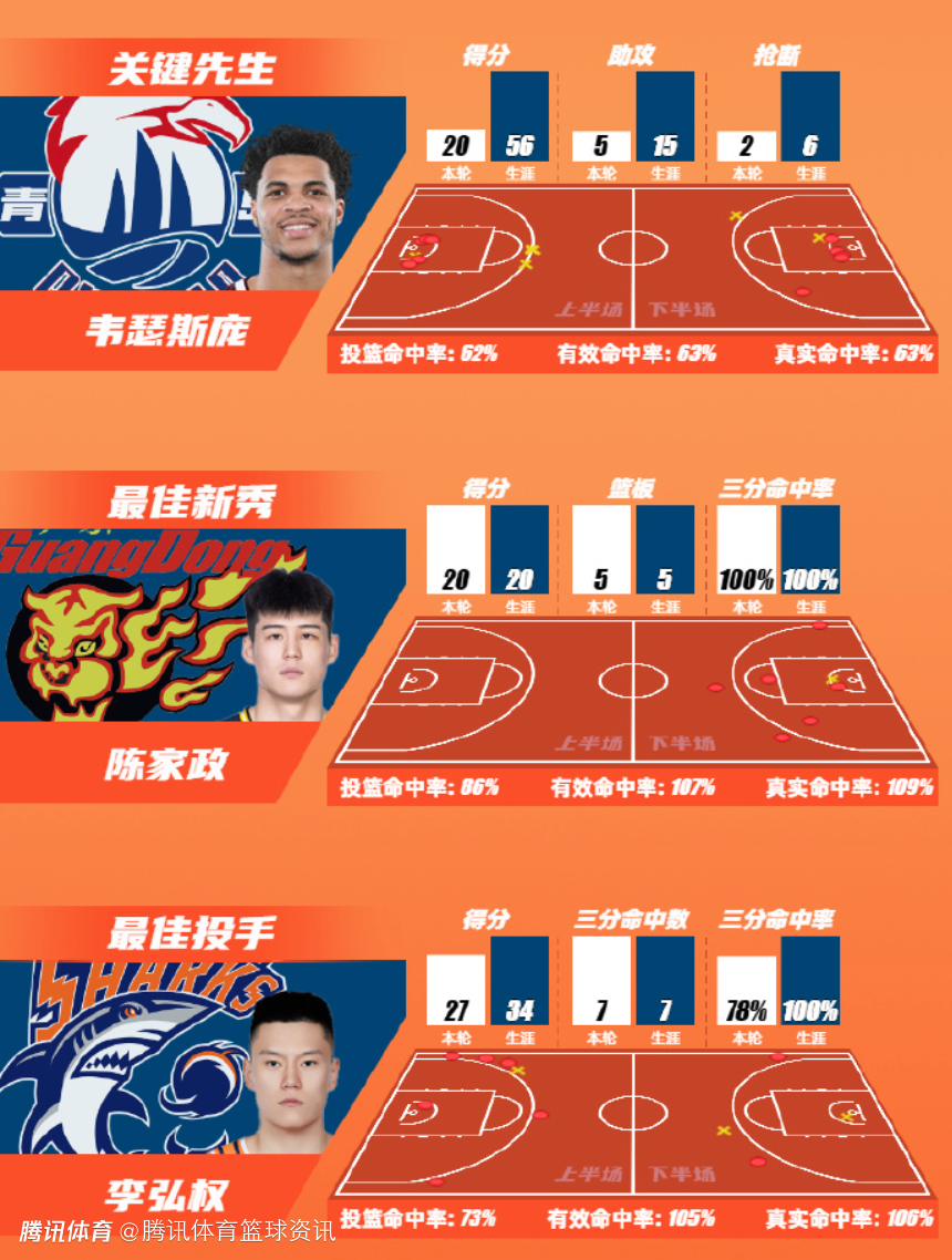 广东宏远篮球俱乐部球员张皓嘉以+38的正负值领先。
