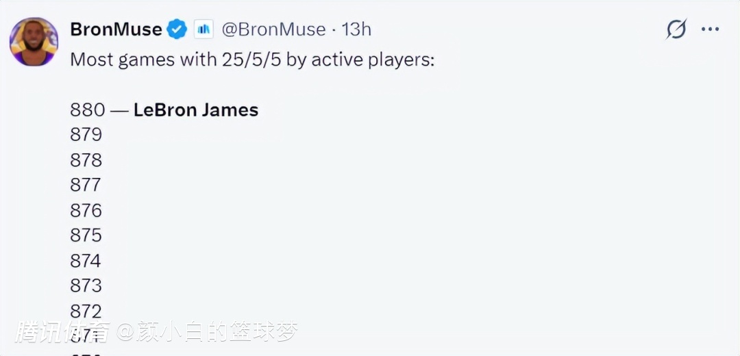 勒布朗目前已经完成880次单场25+5+5断崖第一,排名第二的是哈登392场,威少350次、杜兰特350次,勒布朗实在是太厉害了。