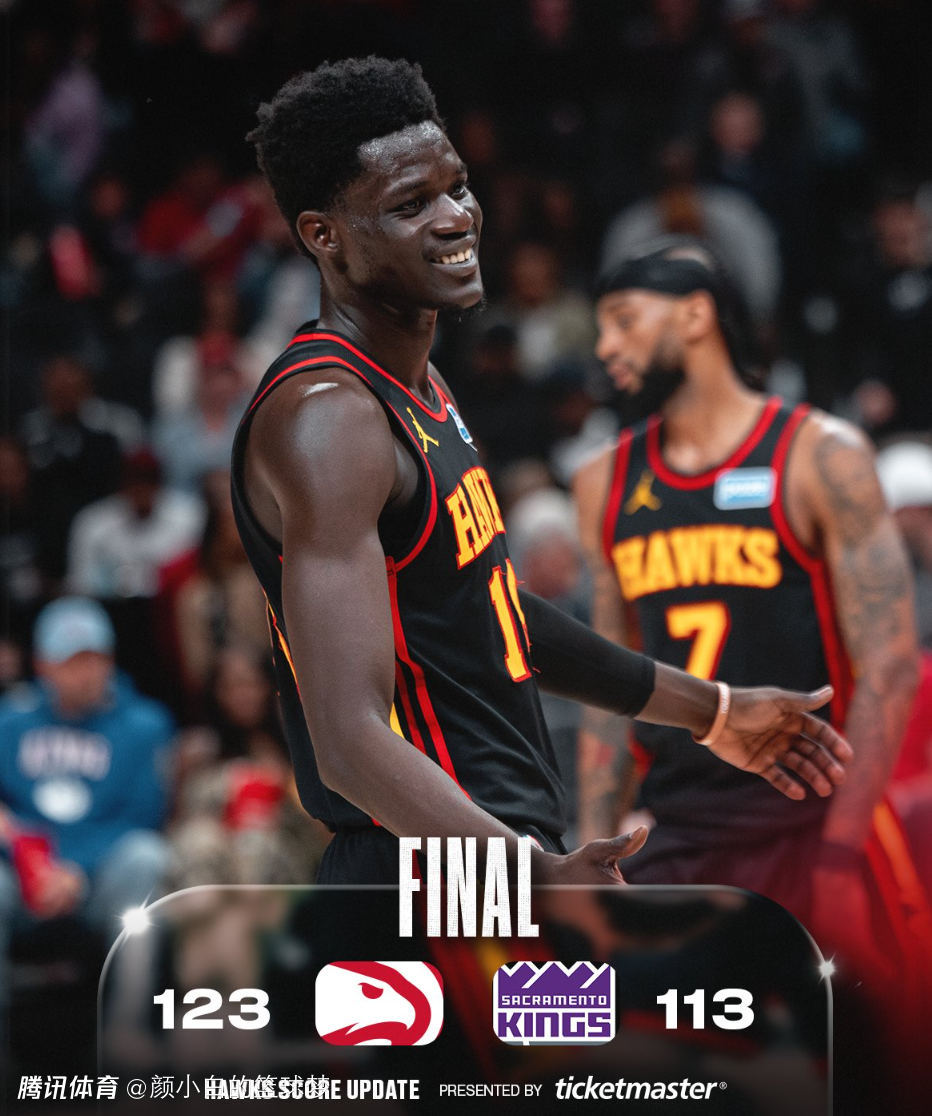 2026-03-29 10:30北京时间3月29日,NBA常规赛,亚特兰大老鹰123-113大胜萨克门托国王避免连败。这场比赛首节打完国王还领先3分,可第二节老鹰一波39-24直接扭转战局,下半场老鹰开始掌控局势,最终老鹰兵不血刃拿下胜利。