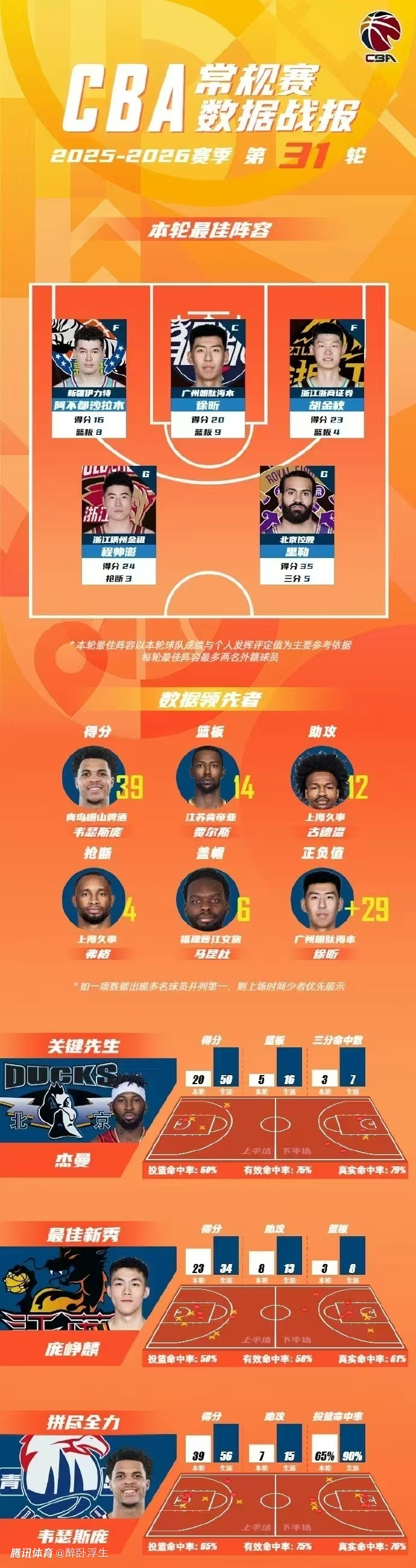 常规赛第31轮最佳阵容: