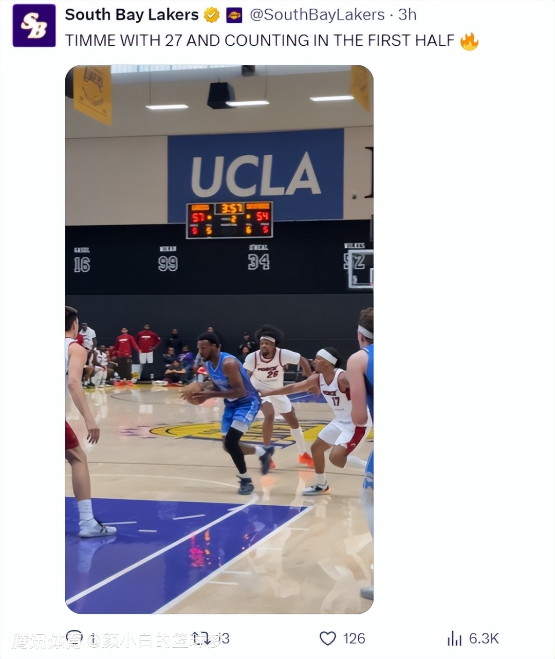 2026-03-29 13:00北京时间3月29日,NBA G联赛常规赛,南湾湖人140-132击败苏福尔斯天空力量拿到二连胜。这场比赛布朗尼-詹姆斯继续带领南湾湖人出战,此役布朗尼拿到26分帮助球队拿下胜利,布朗尼为南湾湖人出战14场全胜。